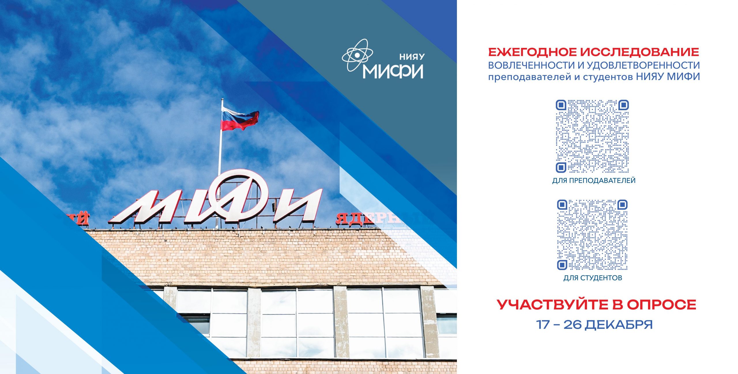 В НИЯУ МИФИ проходит ежегодное исследование вовлеченности студентов и профессорско-преподавательского состава. К участию приглашаются студенты всех курсов и преподаватели высшего образования СарФТИ НИЯУ МИФИ.