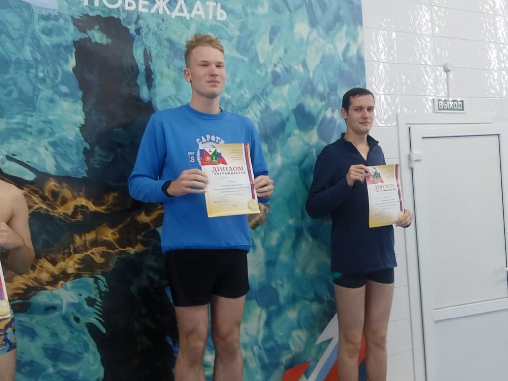 На дистанции 50 м вольным стилем мифисты из СарФТИ заняли весь пьедестал почета: 1 место — Макар Колпаков (гр. ВТ-24), 2 место — Данила Судьин (гр. ИТ-33), 3 место — Александр Московкин (гр. АВТ-15). Победа и призовое место на дистанции 50 м брассом досталось также студентам СарФТИ: 1 место — Сергей Коробов, 2 место — Алексей Вдовкин (гр. ПМФ-33). В соревнованиях девушек Наталья Светлова, проплыв 50 м вольным стилем, поднялась на третью ступень пьедестала. Командная победа досталась четверке наших спортсменов и в эстафете 4х50 м – ее одержали Илья Бурмистров (гр. ВТ-42), Александр Московкин, Макар Колпаков, Данила Судьин.