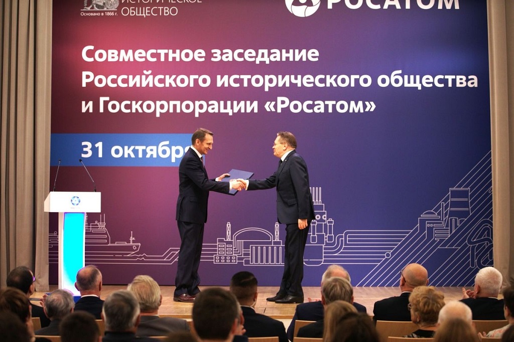Сергей Нарышкин подчеркнул: «Научные и технологические достижения первопроходцев советского атомного проекта позволили совершить настоящий прорыв в ключевых областях знаний, обеспечить обороноспособность страны, раскрыть неведанные ранее возможности бурного развития передовых направлений науки, техники, экономики». А те, кто принял эстафету атомных первопроходцев, кто продолжает их дело сегодня, по словам главы СВР и руководителя Российского исторического общества, вносят весомый вклад в обеспечение безопасности, мощи и процветания России, в поддержание стратегического баланса сил в меняющемся мире.