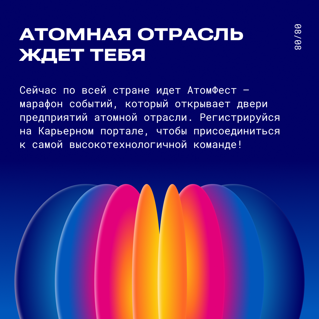 Участвуй в карьерном фестивале #АтомФест, где можно узнать и увидеть много нового и лично пообщаться с HR-специалистами и молодыми сотрудниками — переходи по ссылкам ниже!