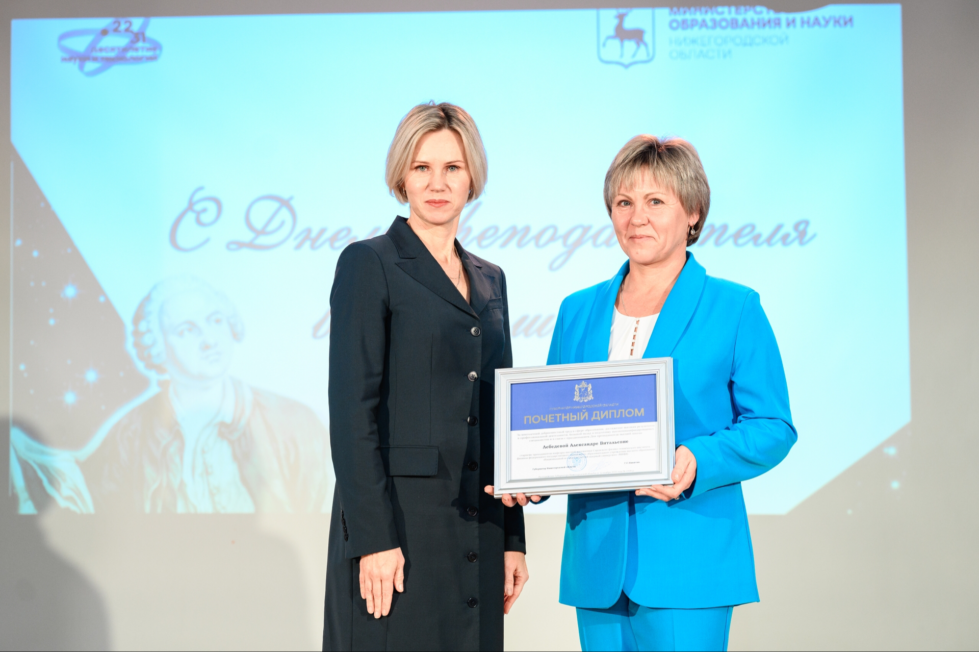 Награждение провела заместитель министра образования и науки Любовь Широкова. В своем поздравлении она отметила: «Нижегородская область сохраняет статус одного из ведущих образовательных центров России. В нашем регионе трудится более пяти тысяч преподавателей высшей школы. Их знания перенимают свыше ста тысяч студентов. Это огромный труд и преданность своему призванию!»