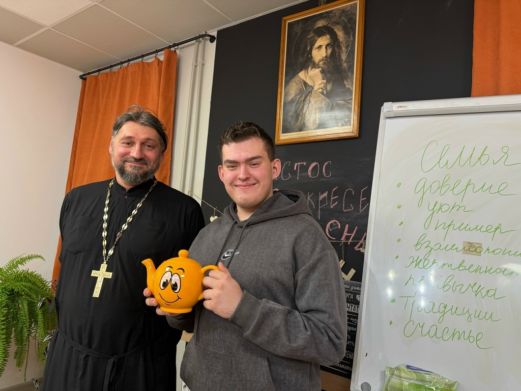 Кроме разговоров и чаепития на клубных встречах всегда бывают подарки. В этот раз студенты получили на память за лучшие вопросы священнику духовные книги: «Дарите любовь» (цитаты из дневников Императрицы Александры Федоровны Романовой) и книгу притч и утешений «Когда Бог далеко». А розыгрыш призов в лото выбрал еще троих, им достались предметы для создания уюта в своем доме.