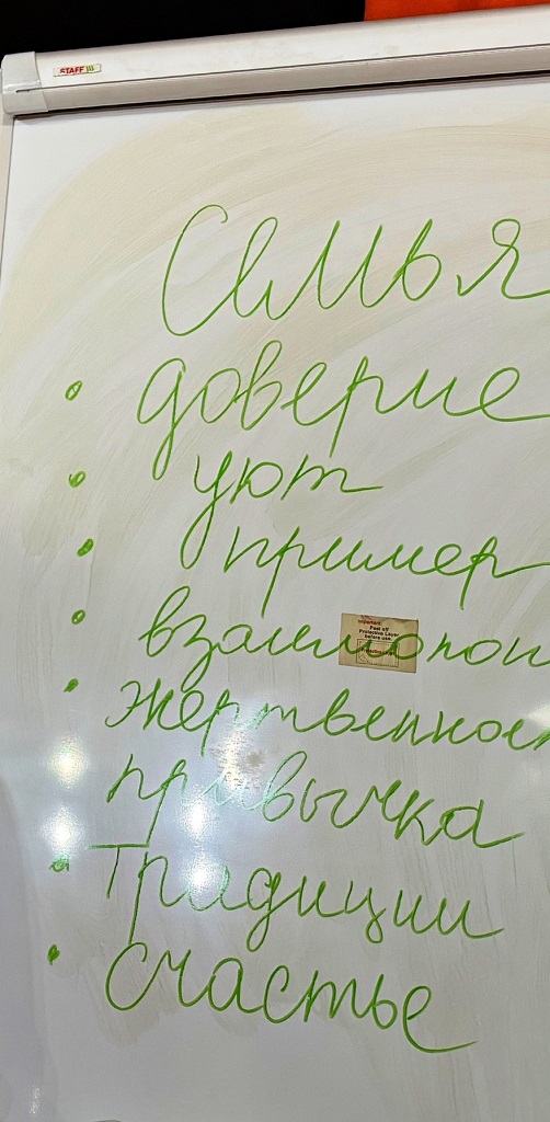 Ребята заранее подготовились к объявленной теме, но во время беседы появлялись новые вопросы, которые также хотелось бы обсудить. Молодые люди делились тем, что значат для них семья и родной дом. Доверие, уют, пример, взаимопонимание, жертвенность, привычка, традиции, счастье… — названные студентами понятия по ходу разговора появлялись на доске. Общение получилось очень искренним, каждый, в том числе и отец Сергий, рассказывал о себе.