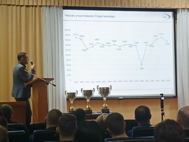 «Все победы уходящего года были посвящены двум важнейшим датам – 80-летию Победы и 80-летию атомной промышленности. За год было проведено 262 соревнования: 202 – местные и 60 – выездные, в них приняли участие почти 12 тысяч спортсменов. В 2025 году число спортсменов регулярно занимающихся спортом в РФЯЦ-ВНИИЭФ, составило 4985 человек», — отметила в своем выступлении начальник отдела физкультуры и спорта РФЯЦ-ВНИИЭФ Наталья Кочеткова.