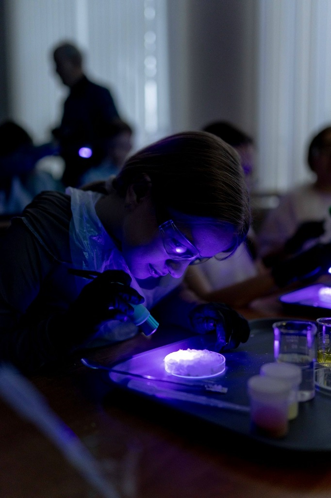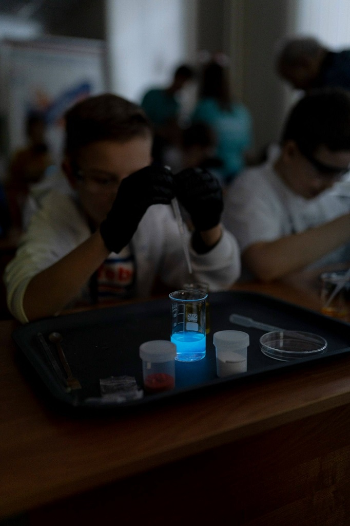 Подготовкой 4-х новогодних научных мастер-классов с проведением и демонстрацией химических опытов по созданию светящегося искусственного снега с люминесценцией вместе с детьми занимались студенты 4 курса Алексей Лесуков и Егор Шувалов (гр. АВТ/РФ-42), Лилиана Юрьева (гр. ЯРФ-42) и Ника Рыжова (гр. ПМФ-42). Опыт основывался на способности полиакрилата натрия абсорбировать воду, за счёт чего он увеличивается в размерах и становится похож на настоящий снег. Не смотря на то, что студенты учатся на разных направлениях подготовки и не связаны напрямую с химией, эксперименты и через них знакомство ребят с новыми научными понятиями увлекли их не менее, чем самих школьников.