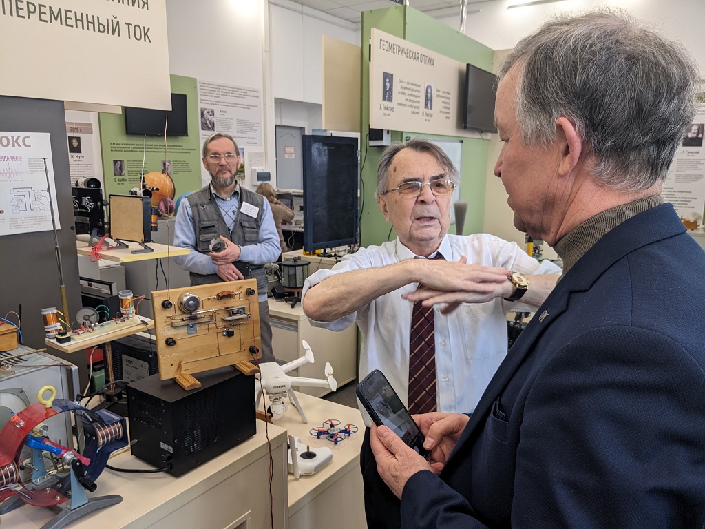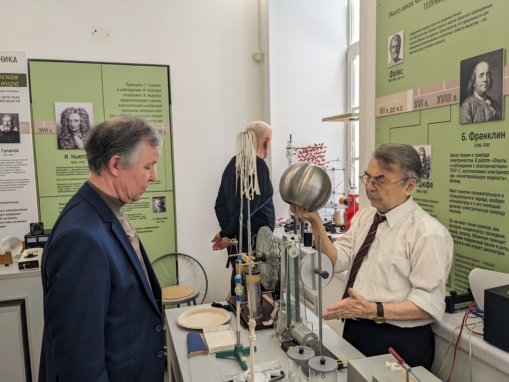 После экскурсии по исторической части музея, которая впечатлила преподавателей СарФТИ редкими и хорошо сохранившимися экспонатами, состоялось главное событие поездки – обмен опытом в области методов демонстрации экспериментов. Лев Васильевич показал гостям десятки установок, некоторые из которых были созданы специально для музея, и поделился тем, как лучше, по его мнению, объяснять детям и подросткам суть наблюдаемых физических явлений. В результате состоявшейся между специалистами дискуссии пришло понимание, какими экспериментами стоит дополнить образовательные профориентационные мероприятия вуза.