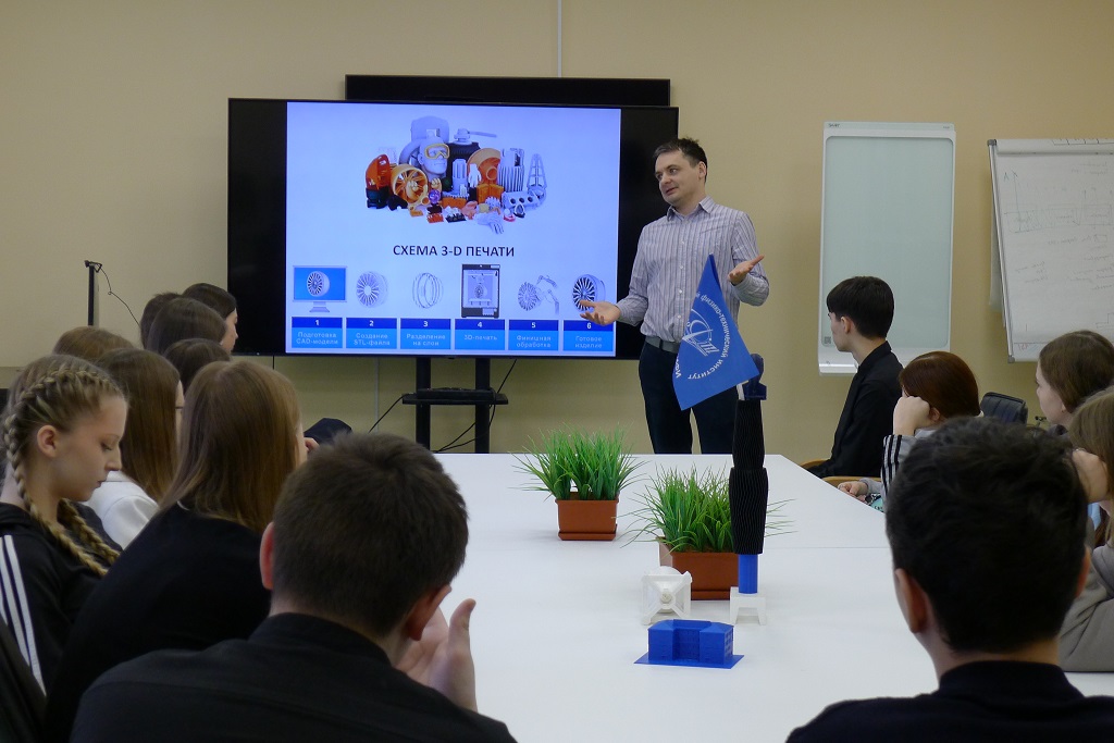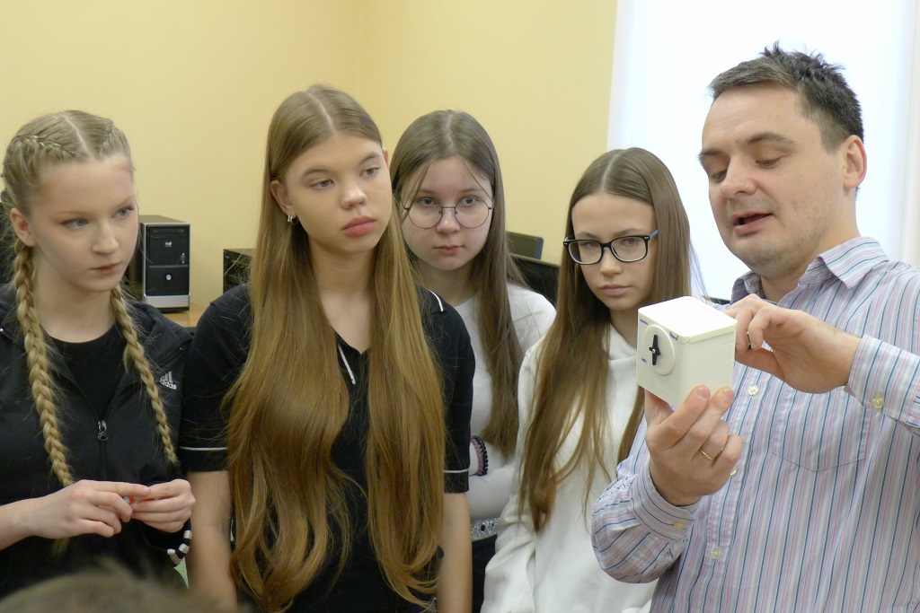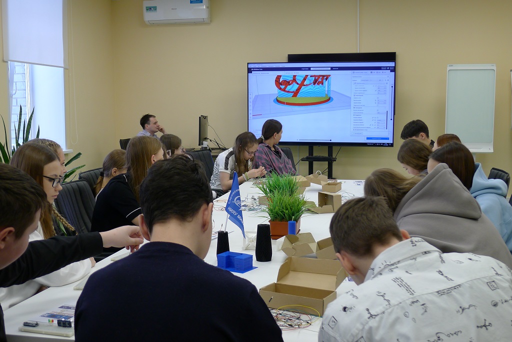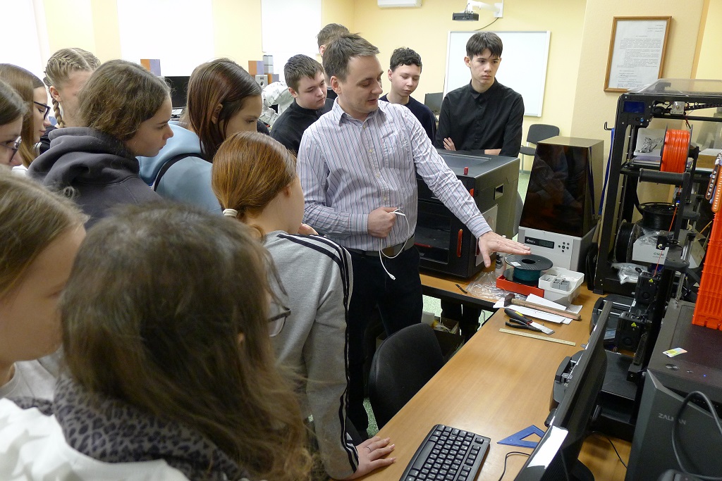 Андрей Додин, координатор проектов развития и преподаватель СарФТИ НИЯУ МИФИ, провёл для ребят вводную экскурсию по Центру цифровых технологий – базовой площадке кафедры «Цифровые технологии» СарФТИ и Института цифровых технологий РФЯЦ-ВНИИЭФ. Восьмиклассникам показали доступное оборудование Центра, рассказали о реализованных студентами нашего вуза инженерно-технических проектах, также они узнали об основах 3D-печати и слайсинга моделей.