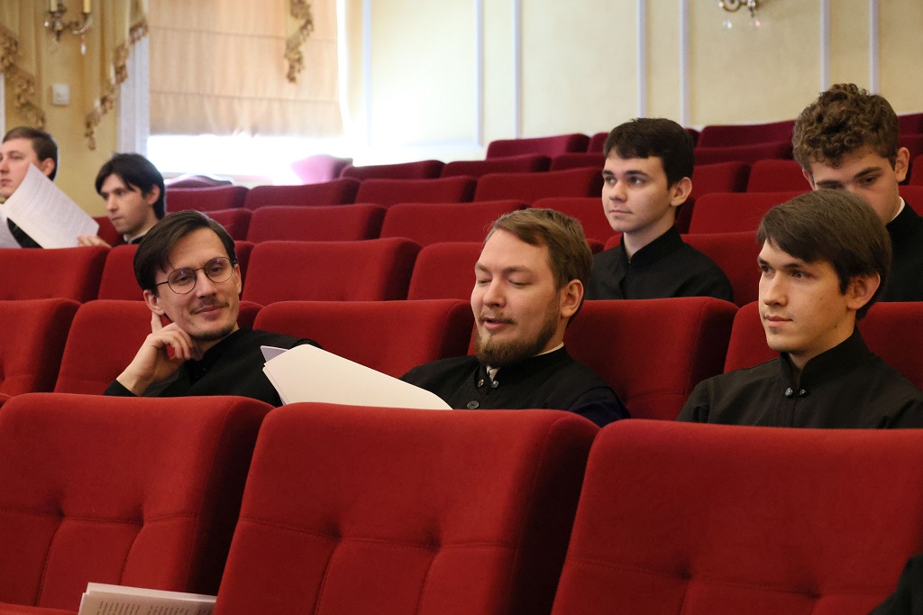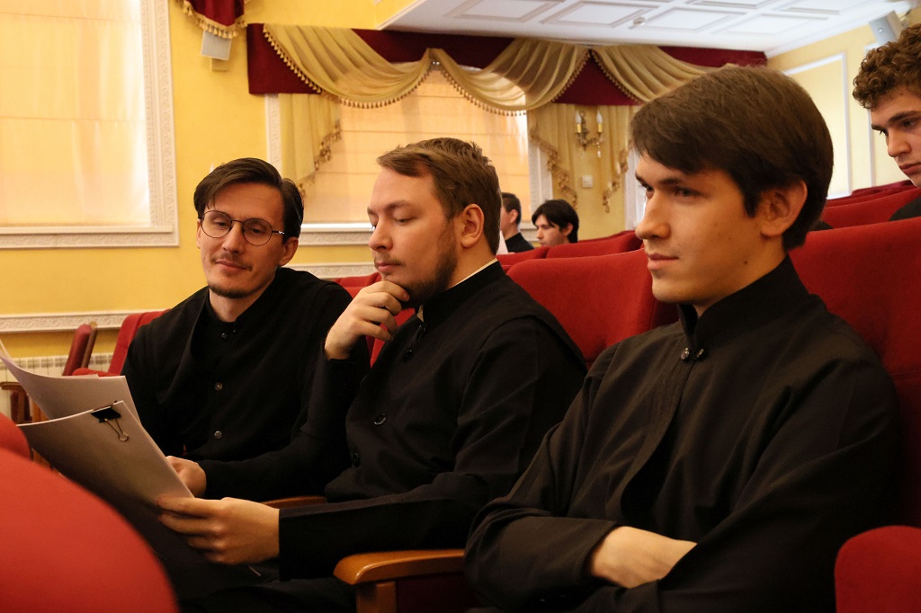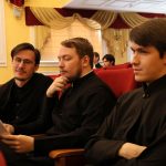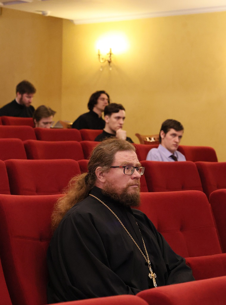 Зачитал приветственное слово Управляющего Нижегородской епархией Высокопреосвященнейшего Георгия, митрополита Нижегородского и Арзамасского, а также от себя напутствовал молодых ученых исполняющий обязанности ректора Нижегородской духовной семинарии протоиерей Василий Спирин