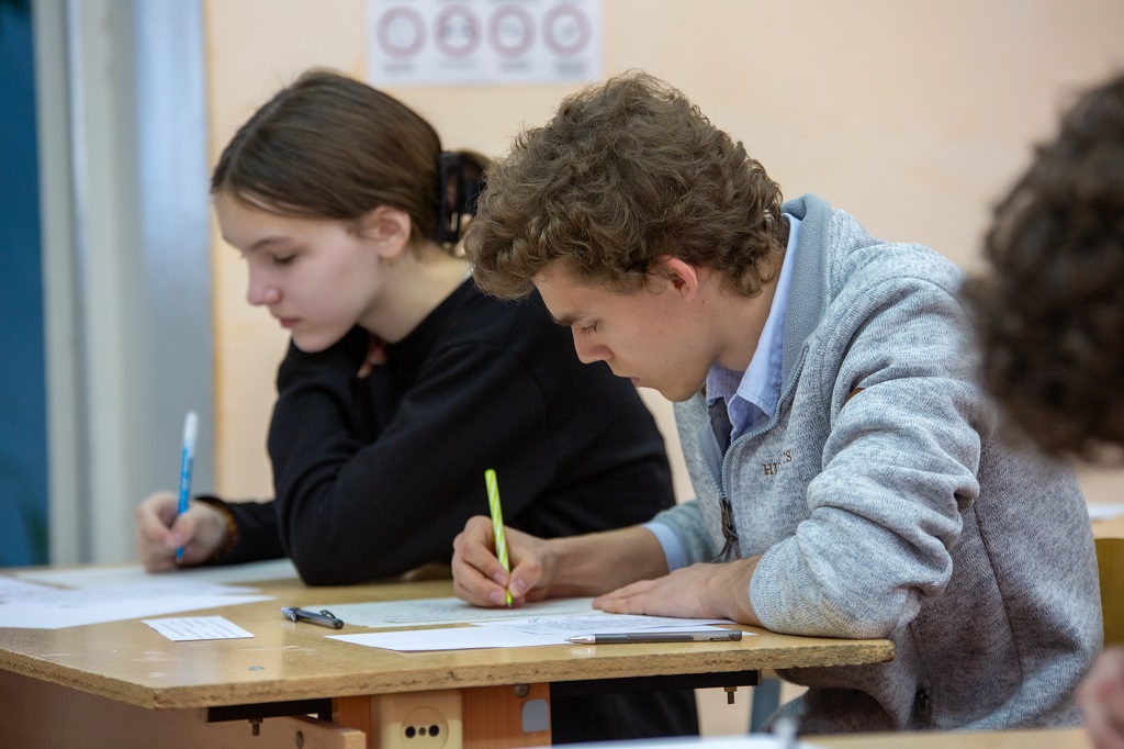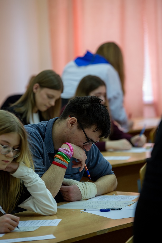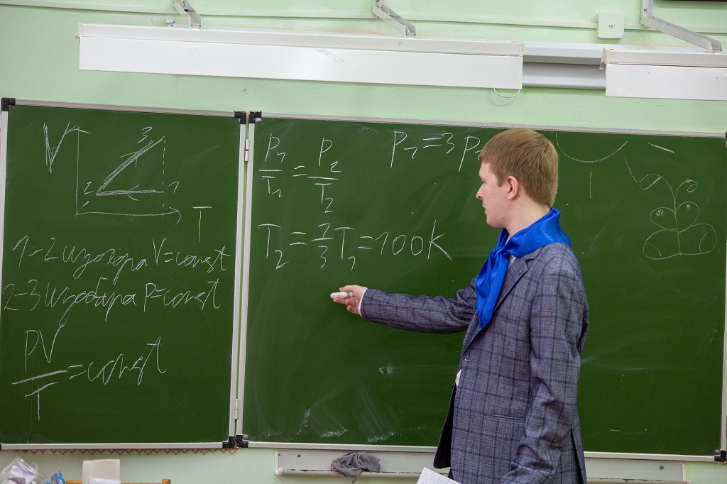 Состязание в решении задач по физике было организовано традиционно — по возрастным группам. После двухчасовых испытаний преподаватели кафедры общей физики и студенты приступили к проверке и оценке работ. Параллельно студенты 2-4 курсов Шепель Ярослав (гр. МФ-42), Махалин Никита (гр. ТФ-33), Гусаров Даниил (гр. КЭ-42), Макаров Егор (гр. ПМФ-33), Евтихов Тимур, Топазов Сергей, Кочнов Андрей, Юшков Ярослав, Фролова Кира (гр. ПМФ-24) провели с участниками по параллелям разбор задач.
