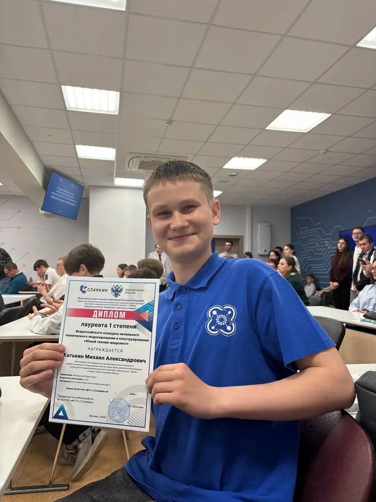 15 апреля в Москве обучающиеся Детского технопарка «Кванториум Саров» Михаил Катькин и Роман Лямкин одержали победу в состязаниях федерального этапа Всероссийского конкурса начального технического моделирования и конструирования «Юный техник-моделист». Наставник ребят – студент Саровского физико-технического института (СарФТИ) НИЯУ МИФИ Алексей Киршин.