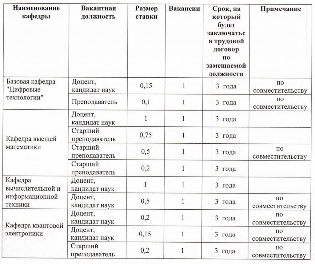 Объявить конкурс на замещение должностей профессорско-преподавательского состава СарФТИ НИЯУ МИФИ: