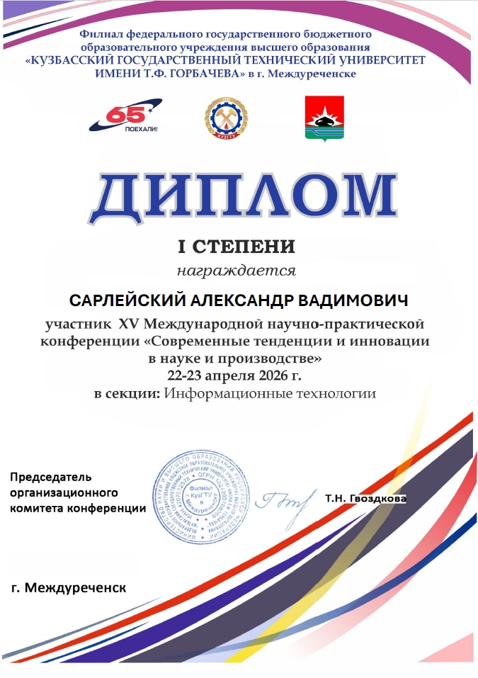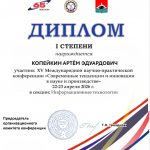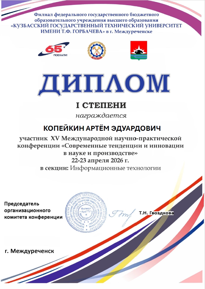 Работы Артёма Копейкина и Александра Сарлейского были признаны лучшими в своих секциях и удостоены наград. Оба участника награждены дипломами 1 степени в секции «Информационные технологии».
